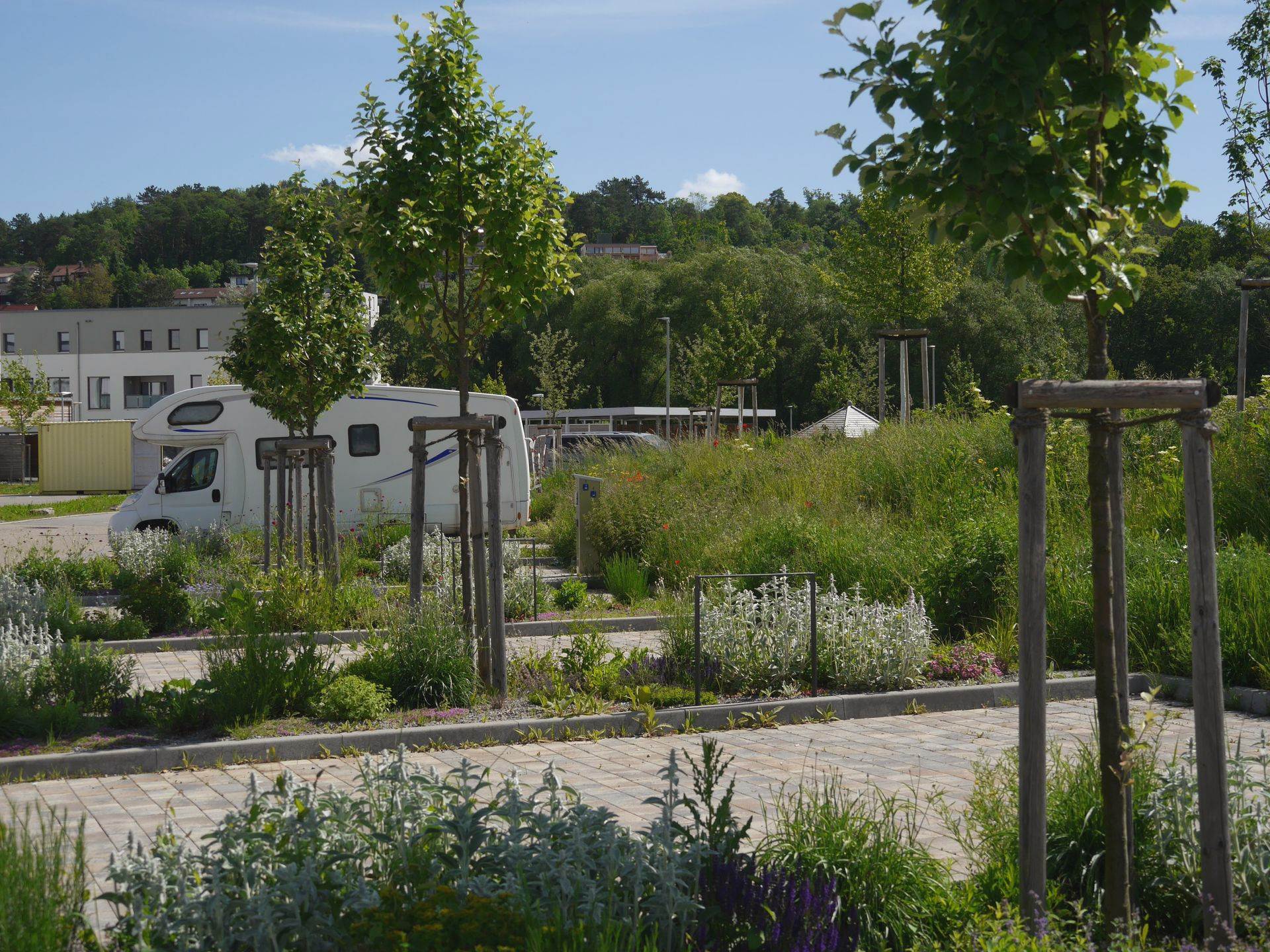 Die Festungsanlage der Stadt Germersheim wurde in der 2. Hälfte des 19. Jahrhunderts als sternförmige militärische Anlage mit Grabenwehren, Waffenreduits, Infanteriegalerien, Kasematten und Mienengängen erbaut und später nach dem Versailler Vertrag in Teilbereichen geschliffen. Erhalten gebliebene Bereiche wurden im 20. Jahrhundert weitere 50 Jahre bis zur Umwandlung in Konversionsflächen militärisch genutzt. Der Stadtpark „Lamotte“ entstand 1999-2001 auf dem ehemaligen Gelände der Theobaldkaserne mit einer Fläche von ca. 3,5 ha. Dieser Park dient heute der Naherholung, hat weiträumige Spielbereiche und verbindet das Stadtzentrum mit weiteren Grünanlagen und den Rheinauen und ist Teil eines den Stadtkern von Germersheim umschließenden Konzeptes von Parks und Plätzen. Der Park und die umgenutzten historischen Gebäude zu Kunst, Kultur und Gastronomie bilden ein gemeinsames Ambiente zum Erholen. Ein weiterer Teilabschnitt ist der neu entstandene Platz um das ehemalige Arrestgebäude, heute Haus der Vereine, mit einer Brunnenanlage aus freigelegten Sandsteinen der „geschliffenen“ Festungsanlage. Kugelkatalpa, Kugelbuchs, Lavendelfelder und Zypressen stehen neu entstandenen Platzflächen aus Sandsteinpflaster gegenüber und vermitteln südländisches Flair.