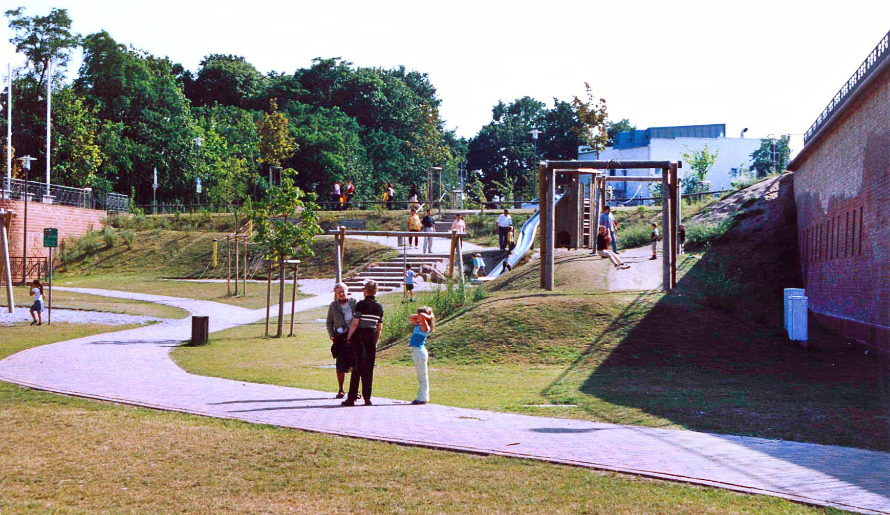 Die Festungsanlage der Stadt Germersheim wurde in der 2. Hälfte des 19. Jahrhunderts als sternförmige militärische Anlage mit Grabenwehren, Waffenreduits, Infanteriegalerien, Kasematten und Mienengängen erbaut und später nach dem Versailler Vertrag in Teilbereichen geschliffen. Erhalten gebliebene Bereiche wurden im 20. Jahrhundert weitere 50 Jahre bis zur Umwandlung in Konversionsflächen militärisch genutzt. Der Stadtpark „Lamotte“ entstand 1999-2001 auf dem ehemaligen Gelände der Theobaldkaserne mit einer Fläche von ca. 3,5 ha. Dieser Park dient heute der Naherholung, hat weiträumige Spielbereiche und verbindet das Stadtzentrum mit weiteren Grünanlagen und den Rheinauen und ist Teil eines den Stadtkern von Germersheim umschließenden Konzeptes von Parks und Plätzen. Der Park und die umgenutzten historischen Gebäude zu Kunst, Kultur und Gastronomie bilden ein gemeinsames Ambiente zum Erholen. Ein weiterer Teilabschnitt ist der neu entstandene Platz um das ehemalige Arrestgebäude, heute Haus der Vereine, mit einer Brunnenanlage aus freigelegten Sandsteinen der „geschliffenen“ Festungsanlage. Kugelkatalpa, Kugelbuchs, Lavendelfelder und Zypressen stehen neu entstandenen Platzflächen aus Sandsteinpflaster gegenüber und vermitteln südländisches Flair.