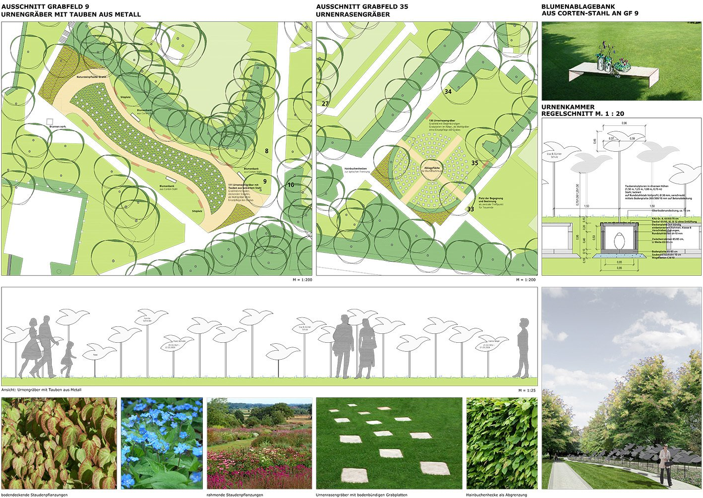 Die Untersuchung neuer Bestattungstrends ist der Schwerpunkt der Friedhofskonzeptionen. Dabei werden je nach Größe und Struktur unterschiedliche Möglichkeiten für die einzelnen Friedhöfe herausgearbeitet.