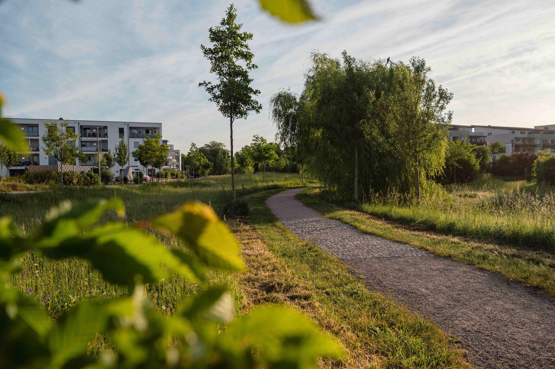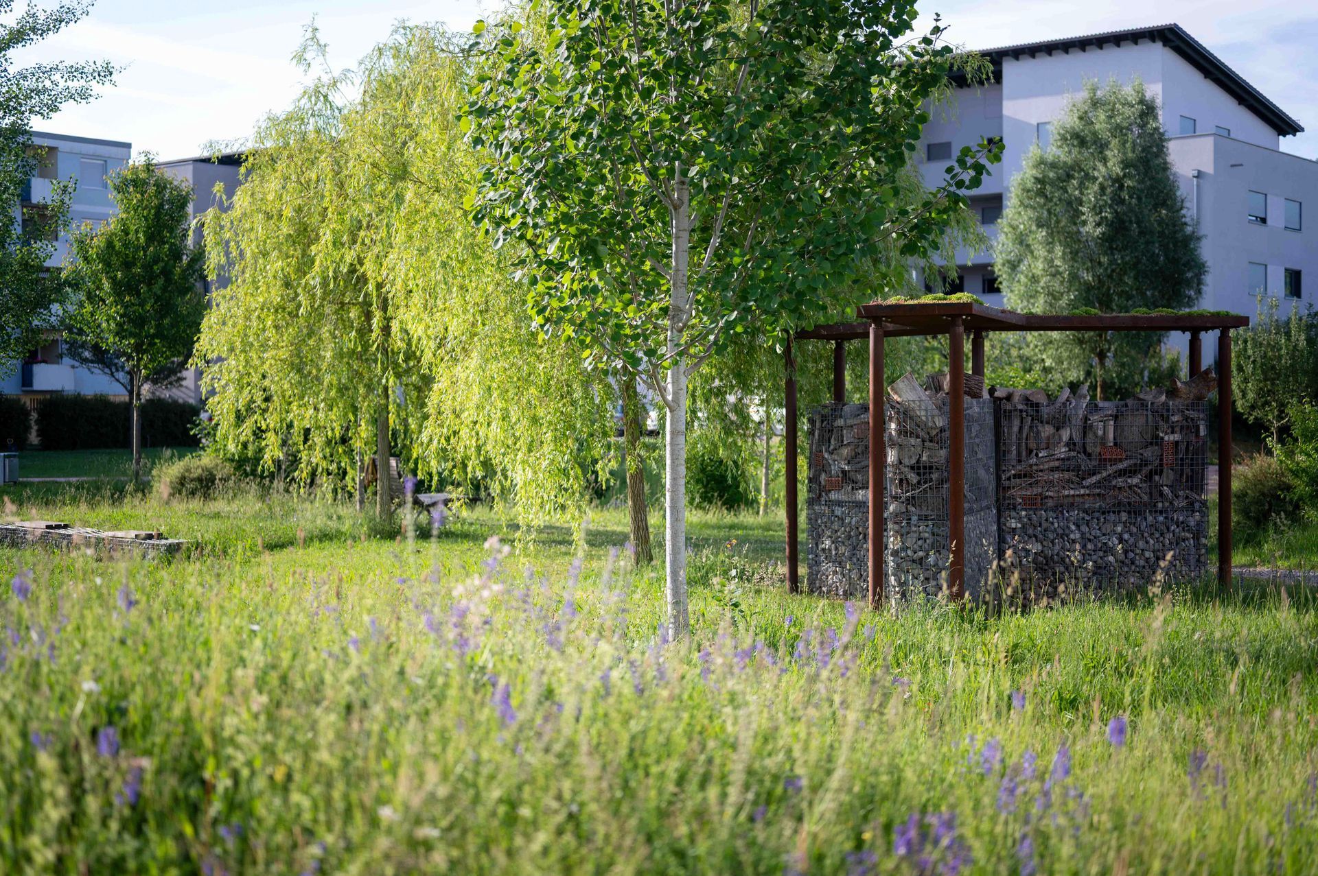 Für das Wohngebiet ‚Schneeflären‘ wurde ein Freiraumkonzept erarbeitet, das wichtige landschaftliche, ökologische und gestalterische Ziele definiert. Die Hauptachse verbindet den Quartierseingang im Süden mit dem Platz im Norden und schafft eine klare verkehrstechnische und gestalterische Struktur. Zudem entsteht ein platzartiges Entree, das den Zugang zum Park integriert und die Wegeführung ordnet. Der Park entlang der Ostflanke verbindet das Areal mit dem Grünzug, bietet Raum zur Erholung und dient als Retentionsfläche für Regenwasser. Kleinere Quartiersplätze dienen als identitätsstiftende Aufenthaltsbereiche und bieten Raum für das Gemeinschaftsleben. Über Wege und Verkehrsmischflächen wird das Wohngebiet mit den angrenzen Quartieren verknüpft.