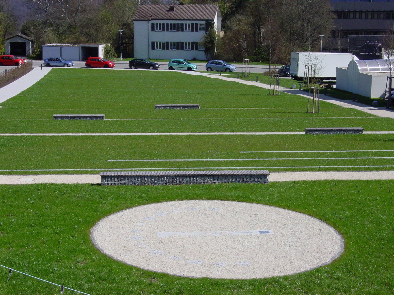 Der Platz wird durch eine reduzierte Gestaltung und einheitliche Materialien bestimmt. Der Park betont den südlichen Abschluss des Platzes. Der Baumbogen steht für unser Sonnensystem, welches symbolisch die Sternwarte als Zentrum hat. Um diese verlaufen elliptische "Umlaufbahnen“, auf denen sich 9 verschiedene Bäume befinden, die für die Planeten stehen (geplant zu einer Zeit, als Pluto noch als der neunte Planet im Sonnensystem galt). Die Namen wurden entsprechend den Entfernungen von der Sonne zugeordnet. Damit entstand ein abstrakter Lehrpfad für die Besucher der Sternwarte, der besonders bei Nacht durch Beleuchtung der Baumkronen mit farbigem Licht zum besonderen Highlight wird.