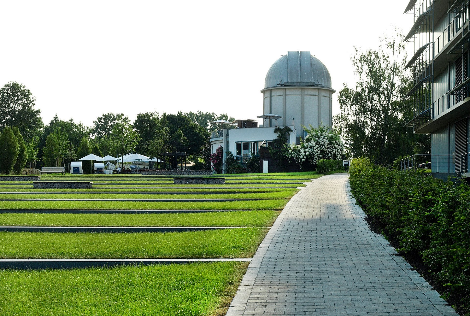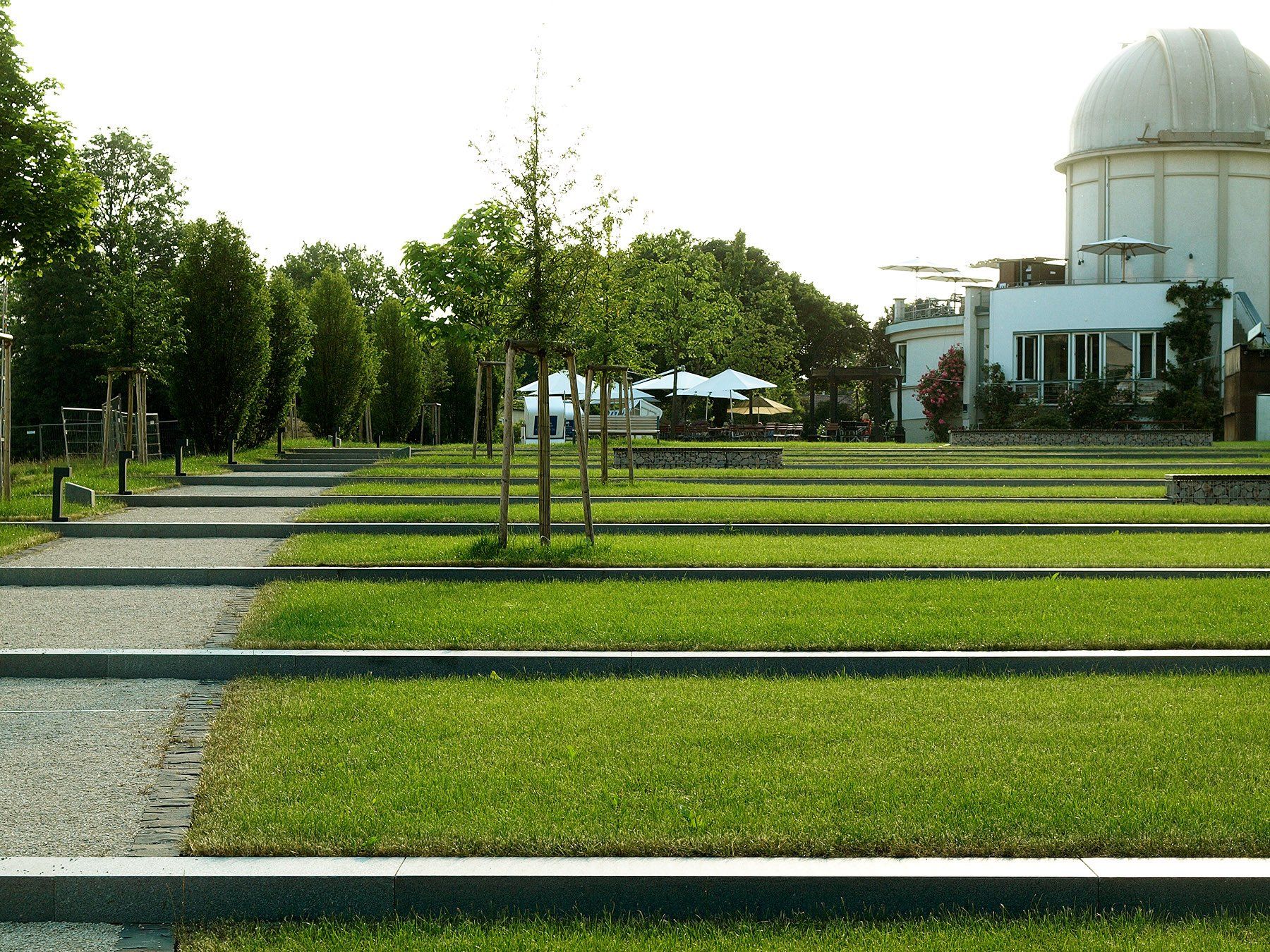 Es entstand ein öffentlicher Platz mit städtischem Charakter, der im Bereich der Sternwarte in einen Stadtpark übergeht. Diese Nahtstelle dient gleichzeitig als Außengastronomie und bietet für die Besucher des Café’s viel Raum für Freisitze und Spielmöglichkeiten für Kinder.